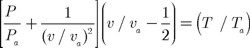 Berthelot called (Pc, Tc, vc) the coordinates of the critical point, (Pa, Ta, va) those of the vertex of parabola 1; (Pf, Tf, vf) those of the vertex of parabola 2, and (Pb, Tb, vb ) those of the vertex of parabola 3. Then he used the three sets of singular points to reduce the actual coordinates and to develop the following corresponding expressions for the van der Waals equation of state:
