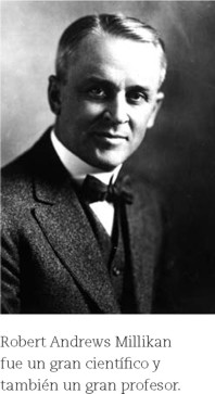Quisiéramos remarcar aquí la participación de Millikan, del Instituto de Tecnología de California, en este proceso. Publicó un libro de texto La mecánica, la física molecular y el calor (Millikan, 1902, que sigue siendo impreso en 2009) para ser utilizado en el curso de Física General en CalTech, poco antes de pasarse trabajando durante ocho años para descubrir la carga del electrón en un aparato digno de quedarse ciego, y verificar la ecuación del efecto fotoeléctrico en un proceso lento del que finalmente dijo: "Me tomó diez años de mi vida poner a prueba aquella ecuación de Einstein, de 1905, y contrariamente a mis suposiciones, en 1915 estuve obligado a declarar su verificación certera a pesar de su irracionalidad, dado que parecía violar todo lo que sabíamos acerca de la interferencia de la luz", cuando calculó repetidamente que sus resultados eran perfectas rectas de diferencia de potencial vs. frecuencia y que tenían como pendiente inequívoca a la constante de Planck.
