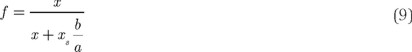 f fraction of the surface area taken up by solvent molecules (eq 9);
