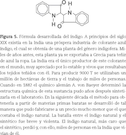 El periodo entre la segunda y tercera revolución química ha sido considerado como la "época de oro de la química" (Knigth, 1992). La materia estaba compuesta de átomos (con valencia) y moléculas, que clasificados periódicamente como elementos, permitían predecir su comportamiento, lo que facilitaba copiar moléculas que se encontraban originalmente en plantas y animales, y posteriormente sintetizar moléculas completamente nuevas. Las sociedades europeas primero, pero posteriormente las del resto del mundo, fueron inundadas con nuevos colorantes (figura 5), materiales y medicamentos provenientes de las poderosas industrias químicas alemanas. En este país, el número de universidades con institutos y departamentos de química, con sus respectivos profesores, investigadores y alumnos creció de manera considerable [...] los que poco a poco empezaron a cambiar sus actividades, siendo una de las más importantes el dejar fundamentalmente de pesar, por medir. La fisicoquímica estaba en camino.14