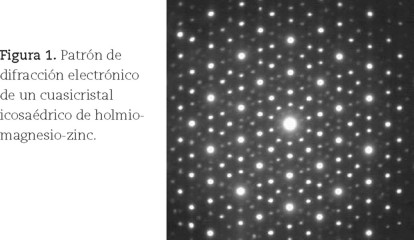 En la figura 1 hemos colocado un patrón de difracción electrónico de un cuasi-cristal en el que es evidente la naturaleza de una simetría de orden 10.