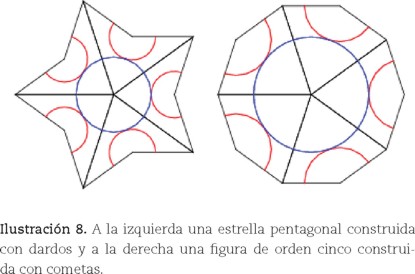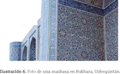 Bohannon (2007) comenta el artículo de Lu & Steinhardt y nos entrega una foto extraordinaria (ver la ilustración 6), en la que se ven igualmente figuras penta y decagonales en las paredes de una madrasa.
