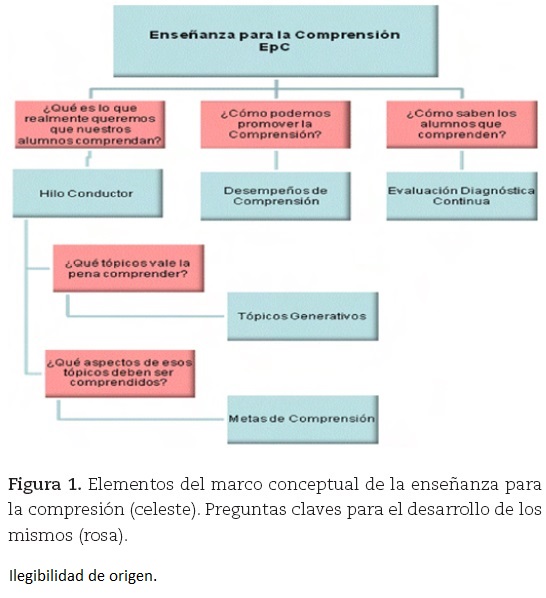 Un marco teórico para una propuesta pedagógica basada en las características mencionadas anteriormente, lo constituye la Enseñanza para la Comprensión (EpC), surgida en el seno del proyecto Zero de la escuela de posgrado de la Universidad de Harvard, que nos brindó los fundamentos para el desarrollo de nuestro propósito Enseñanza para la Comprensión en un Curso de Química en Línea para estudiantes de Ingeniería en el ciclo Básico, según Pogré y Lombardi (2004), Stone Wiske (2003) y Jubert, et al. (2009).