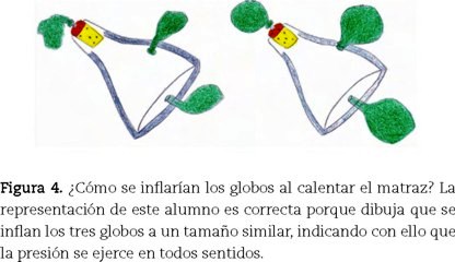 Antes de introducir el matraz en un baño de hielo, se les pidió a los alumnos elaboraran una predicción sobre lo que sucedería. El 97% de ellos dijo que el globo se inflaría y la sorpresa fue general al observar que, en vez de eso, el globo se introdujo al matraz (figura 1).