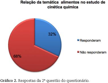 Em função das metodologias adotadas, procuramos saber na questão 04 do questionário, a relação que os discentes poderiam estabelecer entre a conservação dos alimentos no estudo do conteúdo cinética química. Os dados referentes a essa questão, foram colocados no gráfico 2, conforme pode ser observado.