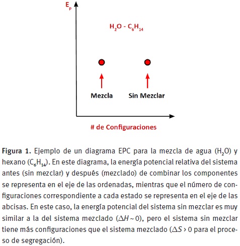 Reconocimiento de un problema didáctico: Hace un par de años, un colega y yo comenzamos una discusión sobre el bajo nivel de comprensión de nuestros estudiantes revelado por un examen departamental del curso de Química General. En particular, nos sorprendió la inhabilidad de los estudiantes para usar modelos atómico-moleculares para explicar la inmiscibilidad de sustancias no polares, como el hexano, en agua. Una alta proporción de los alumnos seguía pensando que las moléculas de las dos sustancias se repelían unas a otras, a pesar de que las discusiones en el salón de clase habían enfatizado una explicación basada en la idea de competencia entre distintas atracciones intermoleculares (esto es, todas las moléculas se atraen entre sí, pero la atracción entre moléculas del mismo tipo es más fuerte que la atracción entre moléculas de distintos tipos). Preocupados por esta situación, empezamos a discutir cómo podríamos ayudar a los estudiantes a desarrollar una mejor comprensión sobre el tema. Nuestras discusiones iniciales se centraron en cómo modificar la enseñanza para hacer el modelo de competencia entre atracciones intermoleculares más claro para los alumnos. Una de las propuestas discutidas fue la de involucrar a los estudiantes en el análisis de información experimental que de alguna forma pusiera en conflicto sus ideas sobre repulsión entre moléculas. Con esta idea en mente, iniciamos la búsqueda de datos experimentales para diseñar la actividad propuesta.