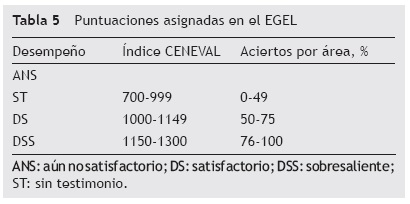Antes del esquema de nueva generación, el EGEL de todas las licenciaturas evaluadas por CENEVAL, incluidas las de Química, Química en Alimentos y Química Industrial, se basaba en una puntuación global como un promedio de todas las áreas incluidas para la obtención de un testimonio de evaluación; ahora bajo el régimen actual, los testimonios se otorgan conforme a criterios que dictamina el CT basándose en la proporción de áreas con el mínimo deseable (DS) relacionando la puntuación obtenida por área con un nivel de desempeño (aún no satisfactorio, satisfactorio y sobresaliente) y la cantidad de áreas requeridas para hacerse acreedor a un TDS o TDSS (CENEVAL, 2009) (tabla 6).