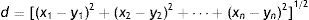 In the next step the geometric distance of an element to all other elements of the training set is calculated. Usually Euclidean distance is computed (Massart, Vandeginste, Deming, Michotte, & Kaufman, 2003). Euclidean distance is a common numerical measure of similarity used in multivariate analysis that is calculated through Eq. (1), where d is the distance between two points (chemical elements) in n dimensional space with coordinates (x 1 , x 2 , ..., x n ) and (y 1 , y 2 , ..., y n ). The distances are ranked in order. The class of an object is predicted according to the class of its k nearest neighbors, that is the origin of the name of the method. k assumes values ranging from 1 to a maximum k value (k max ), one less than the total number of objects in the training set, but as the size of k approaches the number of objects in the training set the comparisons are in fact made to far neighbors. In practice, one could try several values of k and use the one with the best error rate (Rencher, 2002).