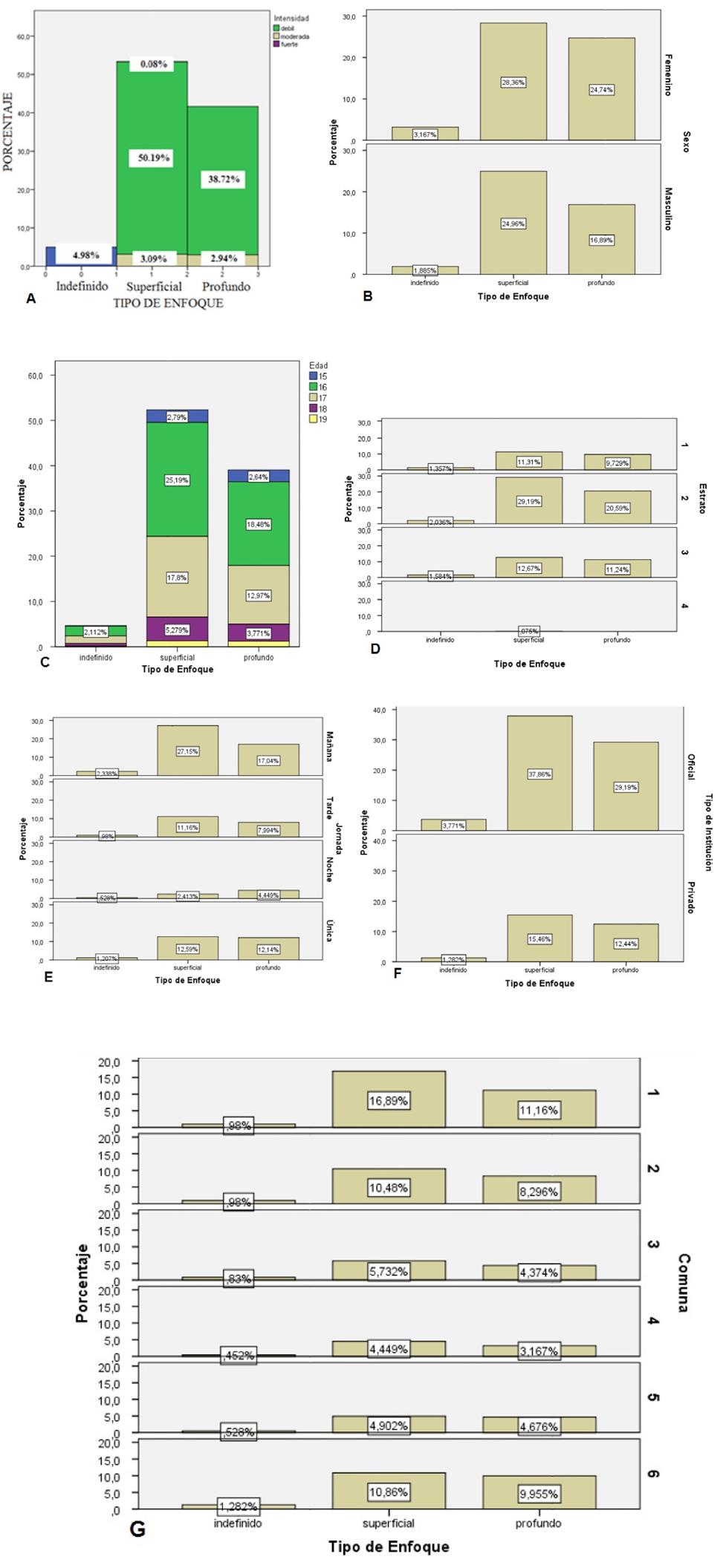 En la Gráfica 1 Se aprecian estos datos expandidos a la población, se reitera la prevalencia del enfoque superficial sobre el profundo, ambos con una intensidad de enfoque débil.
