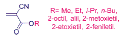 Los adhesivos a base se cianoacrilatos son muy versátiles y pueden unir materiales tan diversos como la madera, el papel, plásticos, metales y porcelana. Además, pueden ser aplicados como selladores y también tienen utilidad como adhesivos quirúrgicos. Por lo anterior se les denomina comúnmente superpegamentos. La fórmula general de los 2-cianoacrilatos de alquilo se muestra en la Figura 2.