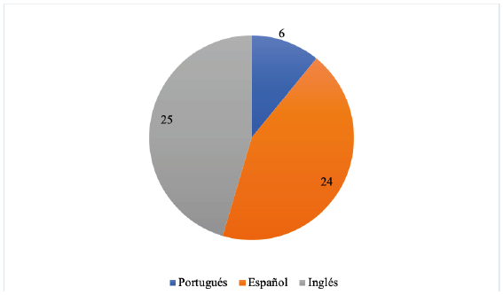En el Gráfico 2 se muestra el número de artículos escogidos por idioma. Se evidencia que las referencias en inglés representan el 45% de los artículos seleccionado, seguido del idioma español que representa el 44% del total de artículos seleccionados, el porcentaje restante del 11%, corresponde a los artículos de idioma portugués. Conforme el estudio, se puede inferir que las investigaciones sobre la Química Verde aplicada en la gestión de residuos de laboratorios en universidades, están siendo desarrolladas y publicadas de manera proporcional en inglés y español. No obstante, hay mayor precisión en los resultados encontrados cuando se hace la búsqueda en idioma español, por lo que se puede deducir que muchas universidades hispanas están trabajando en este tema, siendo un componente relevante para demostrar calidad institucional y compromiso ambiental de ellas.