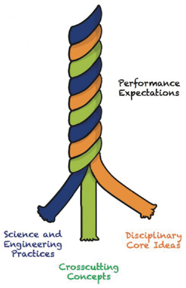 En dicho marco conceptual se establece que la educación científica para la etapa K-12 se debe enfocar en un número limitado de ideas centrales de la disciplina (DCIs, disciplinary core ideas) soportadas e integradas por conceptos transversales (CCCs, crosscutting concepts) y prácticas científicas e ingenieriles (SEPs, science and engineering practices).