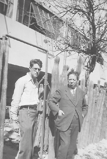 Figura 1 Juan O'Gorman (izda.) y Diego Rivera delante de la vivienda del primero. Fotografía de autor desconocido (ca.1934), publicada en 'Juan O'Gorman', Raza cero: periodismo ciudadano, 2014, Accesible en http://razacero.com/?p=1578.