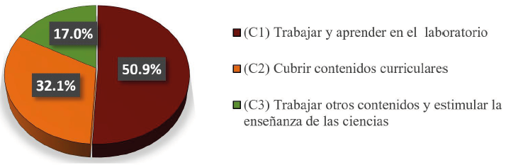 (C2) "Para que vean la aplicación de la química. En un instituto por la temporalización es muy complicado este tiempo de actividad. Ahora estoy en una escuela de adultos, y el currículo es más flexible." [Profesora 326, 2018/2019]