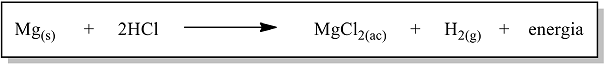 Mg(s) + 2HCI → MgCI2(ac) + H2(g) + energía |