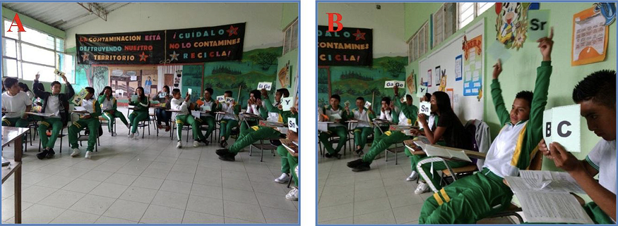 Figura 5 Estudiantes participando durante la clase de reconocimiento de símbolos químicos.