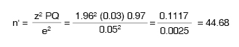 El tamaño de la muestra fue determinado mediante la fórmula descrita por Kish & Leslie, Survey Sampling, John Wiley & Sons, NY, 1965, la cual es la siguiente: