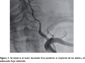Paciente femenina de 22 años de edad. HAS desde los 17 años de edad de difícil control, con dosis altas de prazocin, nifedipino, metoprolo y losartan. Ingresa al Servicio de Neurocirugía por cuadro de afasia motora y hemiplejia izquierda; se hace diagnóstico de emergencia hipertensiva, con daño a nivel del sistema nervioso central tipo hemorragia parenquimatosa, ameritando craniectomía des compresiva y manejo parenteral para control de la presión arterial. Se inicia protocolo para hipertensión secundaria por cardiología, se toma un ultrasonido Doppler renal, que reportó Pb. Estenosis de arteria renal derecha, se programa para cateterismo y colocación de prótesis endovascular nivel de arteria renal, hasta ese momento la paciente se encontraba con manejo a base de nitroprusiato, carvedilol, prazocin, nifedipino, hidroclorotiazida y alfa-metil dopa todos a dosis altas, con lo que se logró mantener la presión arterial en 150/90 mmHg. Se realizó cateterismo renal, vía femoral derecha, se cánula arteria renal izquierda, misma que se reportó anatómicamente normal, no fue posible canular arteria del lado derecho, ya que no existía un vaso anatómicamente compatible con la arteria renal derecha, únicamente vasos de pequeño calibre; se decidió manejo con nefrectomía derecha, reportando los hallazgos postquirúrgicos, atresia de arteria renal derecha y nutrición de dicho órgano por múltiples vasos de calibre menor a 3 mm. Actualmente la paciente con TA de 120/80 mmHg, con manejo a base de nifedipino 30 mg cada 12 horas y losartan 50 mg cada 12 horas, continúa en programa de rehabilitación por secuelas EVC metabólica y hemodinámicamente estable.
