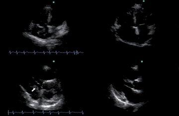 Paciente masculino de la segunda década de la vida, el cual es portador de insuficiencia renal crónica en protocolo de trasplante renal, con terapia sustitutiva renal a base de hemodiálisis. Visto por la consulta externa de forma periódica, ya que tiene fla ventricular con función sistólica del ventrículo izquierdo deprimida FEVI 25%, con disfunción diastólica grado 3, además de derrame pericárdico, en la última visita se observa derrame pericárdico severo con datos incipientes de taponamiento cardiaco, por lo cual es enviado a punción de derrame pericárdico (el cual tiene una separación de 30 mm, promedio), la cual se efectúa, de aparente contenido sanguinolento. Posteriormente en piso clínico presenta deterioro de su clase funcional, con hipotensión y en toma de biometría hemática se observa disminución de la hemoglobina de 8 a 4 g/dL, por lo cual acudimos a realizar nuevo ecocardiograma observando imagen hiperecogénica, homogénea que rodea a ventrículo izquierdo y derecho. Consideramos que es un trombo fresco, por lo cual se comenta el caso con el Servicio de Cardiocirugía siendo llevado a cirugía urgente encontrando perforación del ventrículo derecho de aproximadamente 1 cm, que requirió de un punto de sutura. Con adecuada evolución posterior al mismo y resolución completa del cuadro. Comentario: las complicaciones posibles a una pericardiocentesis van desde: una punción cardiaca no complicada o complicada con hemopericardio o infarto agudo al miocardio, neumotórax, arritmias (taquicardia ventricular), trauma abdominal, paro cardiorrespiratorio, más rara la laceración de arteria coronaria, fístula, infección, edema pulmonar. Debe considerarse lo siguiente: el volumen drenado no determinar el grado de compresión cardiaca a la que está sometido el corazón, el paciente con trauma por pericariocentesis puede requerir de toracotomía o esternotomía para inspección del corazón. En caso de coagulación de sangre en el saco pericárdico, la pericardiocentesis no puede ser terapéutica.