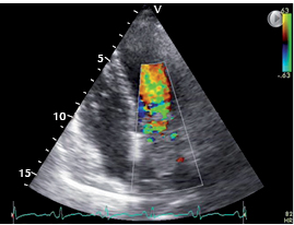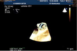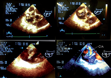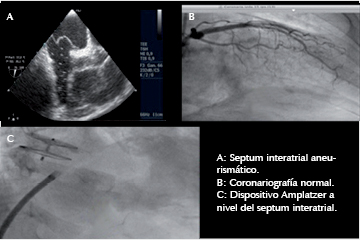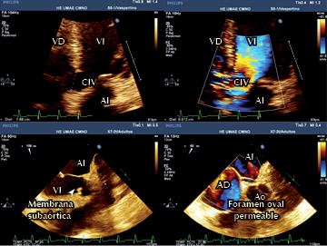 Presentamos el caso de un paciente masculino de 45 años de edad, dedicado al campo, el cual es portador de comunicación interventricular, visto en el IMSS habiendo perdido la derechohabiencia, acude nuevamente posterior a varios años, por deterioro de su clase funcional, por lo cual es estratificado nuevamente con fines de ser llevado a cirugía correctiva. Se realiza en nuestra unidad un ecocardiograma transesofágico como parte de su protocolo encontrando comunicación interventricular subaórtica de 18 mm, cerrado parcialmente por tejido de aposición tricuspídeo con defecto real de 5 mm, así como una membrana subaórtica de 5 mm, que condiciona un gradiente máximo de 35 mmHg, vel máxima de 2.94 m/s. Asimismo por este medio se detecta la presencia de foramen oval permeable. Cuenta ya con cateterismo donde se reporta comunicación interventricular subaórtica, detectando drenaje venoso anómalo de vena pulmonar superior derecha hacia aurícula derecha, detectada por oximetría y angiografía. Tiene coronarias angiográficamente sanas. Comentario: es sumamente raro observar la presencia de CIV asociado a membrana subaórtica, además de no ser habitual (porque no debería llegar) observarlo en la etapa adulta. En este caso el paciente perdió su seguridad social por lo cual no se siguió el caso hasta que nuevamente recupera su servicio de Seguro Social y acude al médico detectando soplo y deterioro de su clase funcional, por lo que fue enviado a protocolo de estudio.