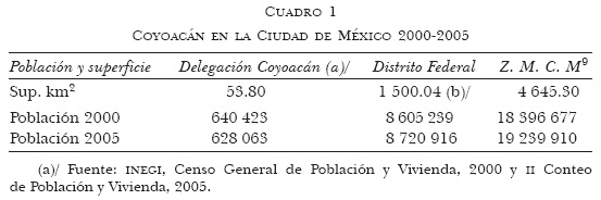 El Distrito Federal, capital del país y sede del gobierno federal, ocupa aproximadamente la tercera parte del territorio metropolitano y concentra poco menos de la mitad de la población. Ésta se distribuye diferenciadamente en 16 delegaciones que representan las subdivisiones político-jurídicas básicas de la organización territorial de la capital del país. La mayoría de las delegaciones comienzan a constituirse en 1928 a raíz de la reforma constitucional que en ese año suprimió el régimen municipal en la ciudad de México, asignando el gobierno de este territorio al Ejecutivo federal y desapareciendo con esta medida el poder local representativo de la capital y de los ayuntamientos (Ziccardi, 1993; Perló, 2003). Éste es el caso de la delegación Coyoacán, creada en el mismo año en la periferia sur de la capital del país. Su ubicación fuera de los límites de la entonces ciudad central, se mantiene formalmente durante las siguientes cuatro décadas de expansión urbana acelerada. En estas circunstancias, la delegación Coyoacán transita de espacio periférico a centro geográfico de la capital del país.