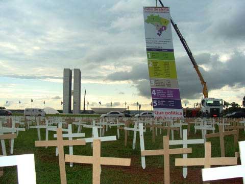 Las manifestaciones públicas, las marchas, las vigilias y los protestas son algunas formas en que los damnificados dan visibilidad a su drama y a la catástrofe silenciada. En Haití, el 7 de abril de 2010, después de sufrir amenazas y desalojos forzados, muchos damnificados marcharon en dirección a la Embajada de Estados Unidos de América y de la Misión de Estabilización de las Naciones Unidas en Haití para protestar contra los desplazamientos forzados (IJDH, 2010). En Perú, los damnificados de Ica realizaron, en agosto de 2012, una vigilia en memoria de los 600 fallecidos durante el trágico terremoto de 2007 y aún esperan la reconstrucción de sus viviendas (Portal Trome, 2012). En Brasil, el 24 de noviembre de 2011, en la Explanada de los Ministerios, en Brasilia, tuvo lugar un acto de protesta mediante 5 000 cruces clavadas en el suelo, para llamar la atención acerca de la grave situación de los afectados por los desastres en el país, los millares de muertos en los últimos años y la demora en el proceso de reconstrucción (imagen 3).