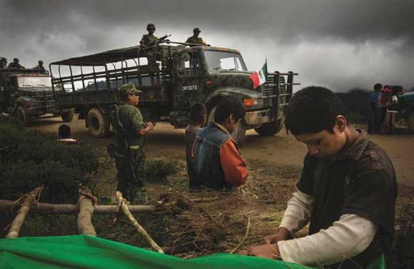 "Al principio, la gente de San Marcos no cuestionó la entrada del ejército, y en Zitlaltepec se dijo que los militares realizarían una campaña sobre alimentación, condicionando la instalación de los comedores a su entrada", recuerda una representante del Consejo. Los habitantes de las comunidades, añade, "estaban más preocupados porque no se les viniera el cerro, y por ver cómo le hacían para resolver el asunto de los enfermos y los muertos". Los soldados entraron por medio de los comedores, pero se dedicaron a preguntar a los habitantes "si conocían a la gente que tenía armas, si la gente se organizaba, que quiénes apoyaban a la Policía Comunitaria, cosas que no tienen nada que ver con la Cruzada contra el Hambre" (Quintana Guerrero, 2014).