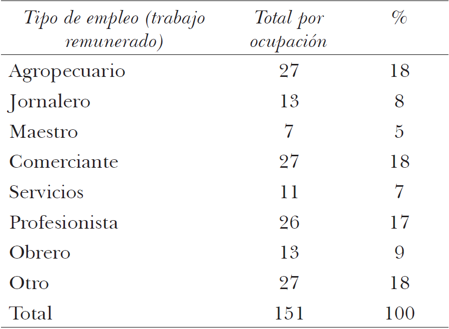 En el cuadro 2 podemos observar que de los 151 jóvenes ocupados entre 15 y 29 años que declaran tener un empleo remunerado, sólo 27 de ellos lo hacen en actividades agropecuarias en cultivos familiares y 13 son jornaleros en la localidad. Paralelamente, los datos señalan un acceso creciente y diverso de los jóvenes a mercados laborales fuera de la agricultura: algunos son profesionistas (26), comerciantes (27), obreros (13) y empleados en servicios (11). Esto supone que los jóvenes dedicados a actividades remuneradas monetariamente fuera de la agricultura conforman 74%, frente a 26% de jóvenes que colaboran en la parcela familiar y se emplean como jornaleros. Sin duda, nos encontramos ante una transición laboral generacional que deja de lado la actividad agrícola para acceder a trabajo en el sector secundario (fábricas e industrias locales) y terciario (comercio y servicios). Asimismo, desde otro punto de vista, los 124 jóvenes que se ocupan como jornaleros, maestros, comerciantes, artesanos, profesionistas, obreros y empleados (82% del total de jóvenes que declararon algún empleo remunerado en el momento de la encuesta) evidencian una transición hacia la monetarización de las formas de remuneración, modificando las relaciones sociales y las formas de consumo que se experimentaban en las sociedades rurales.