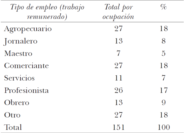 Con base en datos obtenidos de nuestra encuesta, se observa en Nativitas una consolidación de estrategias de formación del ingreso familiar basadas en la pluriactividad laboral. En el cuadro 1 se puede observar que, de los 444 entrevistados que informan estar empleados, 73 señalan tener dos empleos y cuatro llegan a tener tres simultáneamente. Asimismo, destacan los 12 entrevistados que trabajan y estudian simultáneamente, los nueve jubilados que siguen activos en diversos empleos o actividades remuneradas y, sobre todo, los 97 casos de personas que simultáneamente tienen un empleo y trabajan en el hogar.