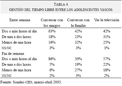 ¿Y qué ocurre con la comunicación cara a cara? Los adolescentes vascos prefieran charlar con sus amigos a ver televisión, hecho que ocurre tanto entre como durante los fines de semana. Sin embargo, el sondeo revela que estos adolescentes pasan más tiempo delante del televisor que charlando con la familia, sobre todo durante los fines de semana.