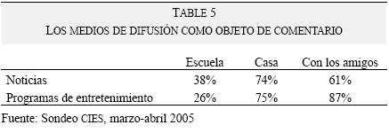 En este panorama, la investigación revela la escasez de intervenciones educativas destinadas al campo de la información y de la comunicación. Respecto a los contextos familiares, salvo excepciones, en el caso de los adolescentes más jóvenes (14/15 años), puede decirse que en los hogares vascos no existen normas férreas de conducta en relación con el consumo de los medios. En cuanto a los contextos formales de educación, los contenidos de los medios de comunicación apenas son objeto de comentario en el ámbito escolar, no ya los programas de entretenimiento, ni tan siquiera las noticias: ni se discuten ni se cuestionan, simplemente se ignoran. Es en el seno familiar o entre los amigos donde se comentan estas cuestiones, cuando se comentan.