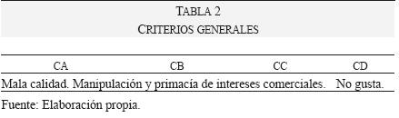 Criterios generales. La deslegitimación social del medio no proviene solo de diferentes instituciones, desde las académicas hasta el propio Estado, sino que está sustentada por los consumidores de todas las clases sociales. Todos los discursos analizados, en diferente grado y con diferentes argumentos, han tildado a la televisión de mala calidad, de manipulación y de negocio en el que priman los intereses comerciales.