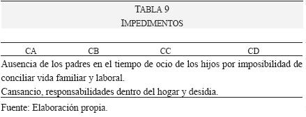 Impedimentos. El mayor impedimento con el que se encuentran los padres a la hora de mediar entre sus hijos y el uso que hacen del televisor es la imposibilidad de ejercer la mediación porque no se encuentran en los hogares durante una parte importante del tiempo de ocio de los hijos por sus responsabilidades laborales. Esta situación expresada en todos los discursos tiene que ver, sobre todo, con aquellas familias en las que ambos padres trabajan fuera del hogar, a las que tenemos que sumar aquellas familias monoparentales en la que los hijos viven con el padre o la madre que trabaja fuera del hogar.