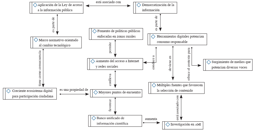Como lo manifiesta Mateus (2021), el acceso a Internet constituye un derecho humano, por ende, las políticas de medios deben centrarse en el empoderamiento de la ciudadanía, y las políticas educativas de AMI deben abordar el aprendizaje profesional inicial y continuo de los docentes para garantizar su éxito. Para Ho y Ye (2024), mejorar las habilidades de AMI en las personas es una forma efectiva de abordar las problemáticas actuales a través del desarrollo de políticas estatales.