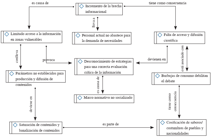 Como resultado, se presentan contenidos trivializados que no aportan un valor agregado; esto se genera por un desconocimiento en cuanto a la evaluación informativa o marcos legales implícitos al momento de consumirla. Incluso, la sobreexplotación de temas banales (sin mayor respaldo científico), conlleva a “disminuir el nivel de debate, lo que se ve reflejado en cosificación de saberes, etnias o nacionalidades” (Representante del Observatorio Interuniversitario de Medios Ecuatorianos en eje temático 1).
