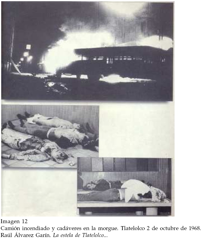 Las imágenes de la represión de Tlatelolco ocupan tres planas completas con un número total de 22 fotografías y algunos fotogramas del documental de Oscar Menéndez. Esta relevancia gráfica coincide con la importancia asignada al hecho en el desarrollo mismo del texto. El episodio fundamental de la historia narrada por AG se registró el 2 de octubre. Dicha fecha marca un parteaguas en la política mexicana. El aplastamiento militar del Movimiento no significó para el autor su derrota política. Por el contrario, señala y enfatiza la manera en que la generación del 68 se integró a la vida del país y modificó la realidad política del mismo en las siguientes tres décadas.