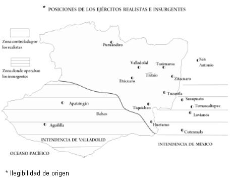 A través de los datos proporcionados, dio una idea precisa de los puntos ocupados por las fuerzas realistas e insurgentes, así como de las maniobras realizadas. En ese sentido, mencionó haber instruido al teniente coronel Juan Amador, para que con su caballería recorriera los parajes de Tzitzio y Zacate Colorado, sin avanzar por el rumbo del Canario y Santa Rosa; que la línea ocupada por las tropas españolas era: Tuzantla, Taximaroa, Tzitzio, Etúcuaro, San Antonio y Nocupétaro hasta Huetamo.