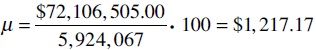 Con los datos de la ENIGH-2004, y conociendo el número total de hogares en la población (n), se obtuvo la cantidad de hogares a encuestar (n). Tomando en cuenta que el ingreso rural nacional (INEGI , 2004) es de $72,106,505.00, con una población total rural de 5,924,067 hogares, la media poblacional del ingreso rural nacional (μ), para una comunidad de 100 habitantes es de $1,217.17.