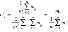 Análogamente, el índice de dispersión (id) de cada cuenta i se define como la media de los elementos de la fila i dividida por la media de las medias de todas las filas: