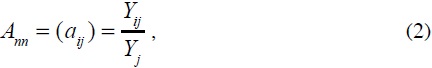 en donde los elementos (aij) representan la proporción de las compras de la cuenta j a la cuenta i, en el gasto total de la cuenta j.