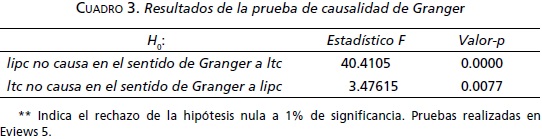 Los resultados de la prueba de causalidad de Granger se presentan en el cuadro 3: