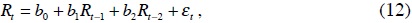 La media de la serie de rendimientos fue modelada simplemente por el modelo ARMA (p, q) que mejor se ajustó, en este caso viene dado por un AR (2):2