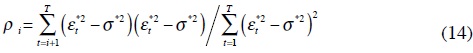 donde T es el número de observaciones. Los coeficientes de autocorrelación se calculan a partir de: