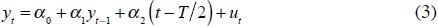 con el fin de verificar si la hipótesis nula de γ = 0. Si γ = 0, se dice entonces que la serie en cuestión tiene una raíz unitaria. La prueba Phillips-Perron (PP) implica la estimación del modelo: