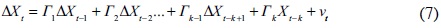 No obstante lo anterior, un método para probar cointegración entre las series que supera la anterior limitación es la técnica de Johansen, la cual consiste en probar el rango de Γk, la matriz de parámetros asociada con el vector de rezagos en los niveles de las variables. Esta técnica especifica el modelo de corrección del error (MCE) de un VAR de m-variables para un vector de series de tiempo Xt como: