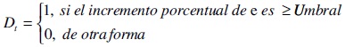 Donde la variable dummy, D, da cuenta de si la depreciación del tipo de cambio4 es mayor que un determinado umbral, como se describe a continuación: