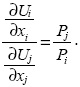 Si algún reproche pudiera hacerse a Walras en la formulación de su teoría de los precios, es que plantea condiciones subjetivas, por la vía del rareté, para la determinación del equilibrio, condiciones que maximizan la satisfacción de los agentes económicos en forma de ecuaciones que establecen, para cada individuo, la igualdad entre la razón de las utilidades marginales de dos bienes (tasa marginal de sustitución) y el respectivo precio relativo de éstos (costo de oportunidad).5 De aquí se desprende el hecho de que la teoría neoclásica plantee la regla de maximización en los términos siguientes: para maximizar la satisfacción del consumidor, el ingreso monetario de éste debe ser asignado de manera tal que el último peso gastado en cada producto comprado, produzca respecto a cada mercancía, la misma cantidad extra (marginal) de utilidad.
