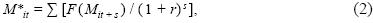 donde r es la tasa nominal de interés. El valor de M*it puede interpretarse como una medida aproximada de la riqueza neta de la unidad económica, la que se considera positiva en los tres casos de unidades de la taxonomía de Minsky: