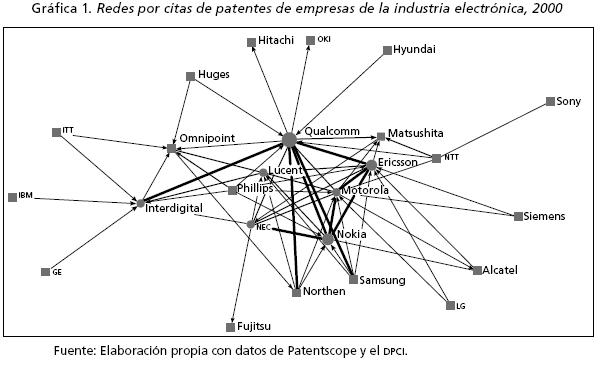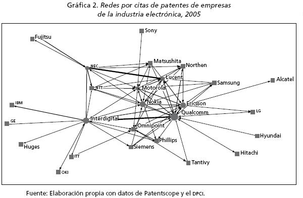 Este artículo se enfoca principalmente a la medición de la posición de las empresas de un sector de alta tecnología dentro de una red de conocimiento. Para ello, se eligió la industria electrónica en México y los resultados muestran que los nodos de la red están conformados por empresas extranjeras, confirmando la hipótesis de que las empresas mexicanas de la industria electrónica no ocupan posiciones centrales en las redes del conocimiento en el país, ya que éstas se encuentran ocupadas por las grandes compañías de capital extranjero. En lo que respecta al uso de la metodología para elaborar redes de conocimiento a partir de las citas de patentes, se encontró como ventaja la posibilidad de obtener información a lo largo de un amplio periodo de tiempo. Con ello, es posible generar una base de datos consistente para analizar diversos fenómenos de estudio, en nuestro caso los flujos de conocimiento que permean otras innovaciones dentro o fuera de la propia organización, ubicando a la empresa en cierta posición respecto al resto de entidades del sector por sus derramas de conocimiento.