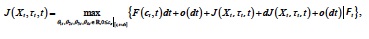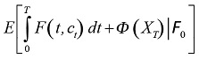 en donde F es la satisfacción (descontada) para consumo y Φ es la función de legado o herencia (o función de retiro) al tiempo T, la cual mide la utilidad de contar con recursos al final del período y F0 es la información relevante al tiempo t = 0.